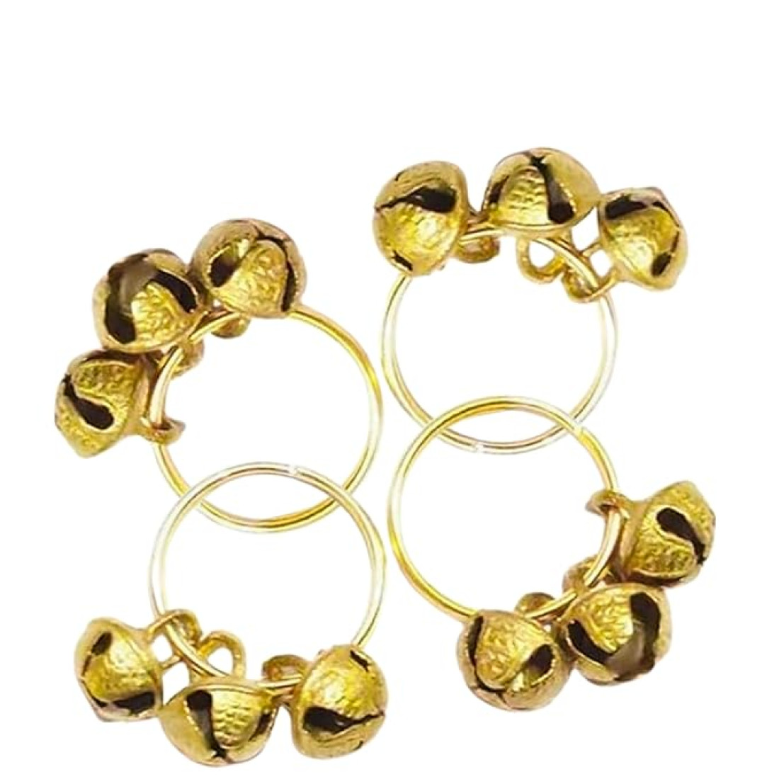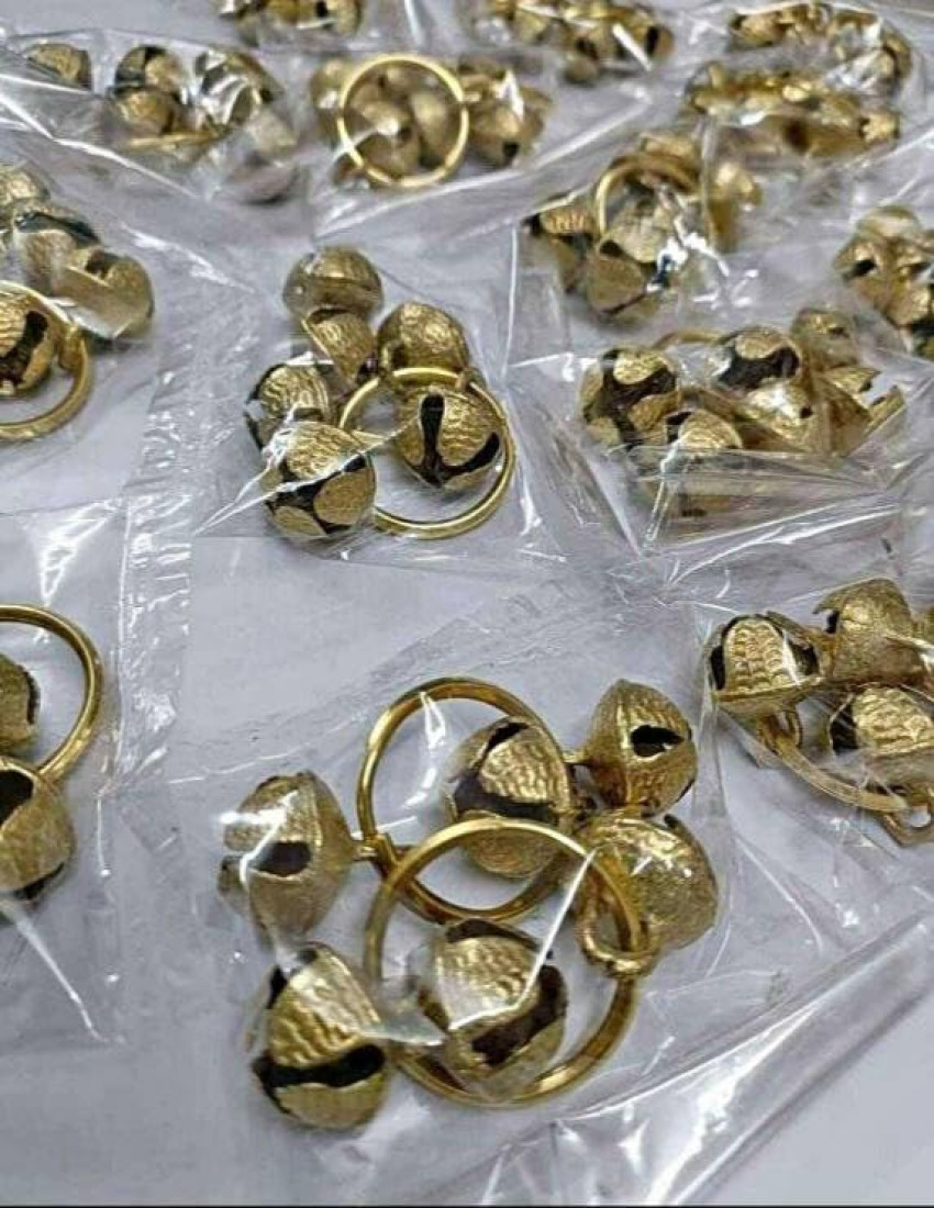 Immerse yourself in the richness of traditional indian culture with the 2 brass hand clapping ghungroo kadi finger ring meticulously crafted and adorned with tiny bells. finger cymbals This beautiful musical instrument elevates the spiritual atmosphere of your pooja, aarti, bhajan, and ganesh / ganapati and other god godess lord festival and musical events celebrations. The harmonious chiming of the bells produces a sweet sound that elevates your spirit, adding a divine and sincere touch to every ritual. Whether you're clapping along in devotion or infusing your dance with musicality, this brass ghungroo kadi ring is the ideal companion for your spiritual journey. Constructed From Premium Brass, Elevate Your Worship And Dance Experiences With This Exquisite Traditional Accessory.